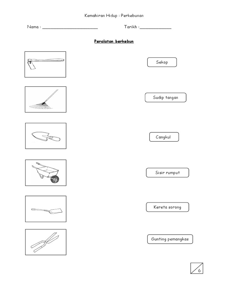Alatan perkebunan hendaklah dijaga dengan rapi digunakan dengan betul dan disimpan di tempat yang selamat apabila tidak digunakan. Save Save Latihan Lembaran Kerja Modul Kebun For Later. Semasa aktiviti ini guru perlu bertanya nama alatan.